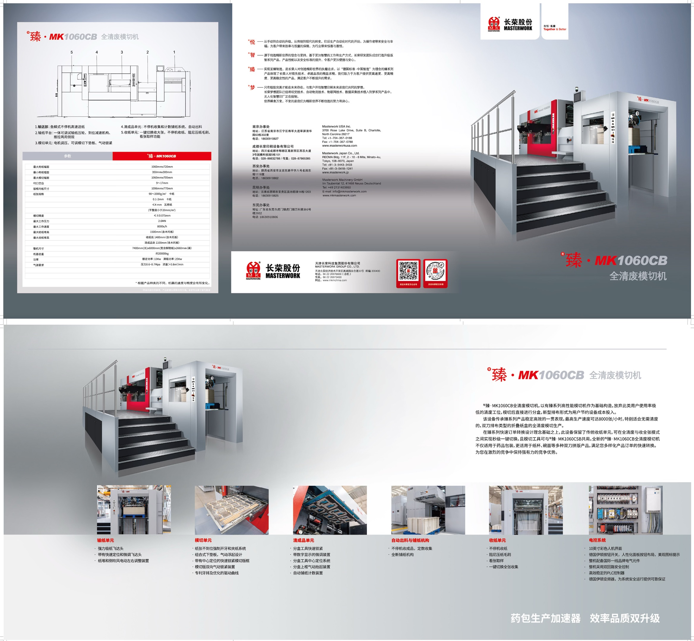 臻 · MK1060CB 全清廢模切機,以有臻系列高性能模切機作為基礎構造,放棄此類用戶使用率極低的清廢工位,模切后直接進行分盒,新型排布形式為用戶節(jié)約設備成本投入。